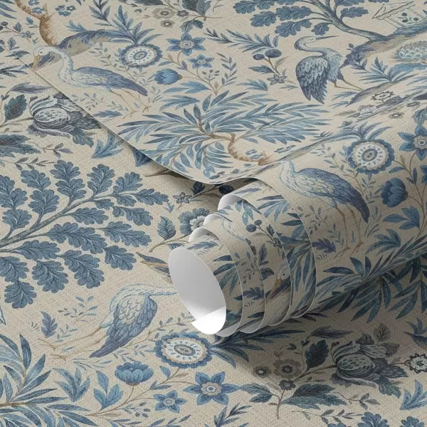 Wallpapers Toile de Jouy style with blue birds and tropical trees Nr. a00382