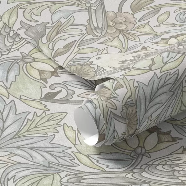 Wallpapers Art Nouveau birds and pastel stylized flowers Nr. a00385