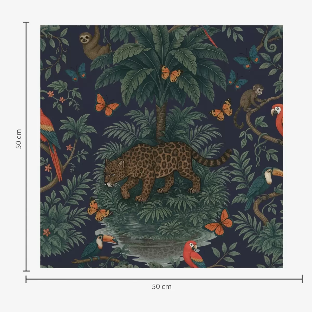 Wallpapers Tropical jungle with leopard, leopard, parrots and butterflies Nr. a00388