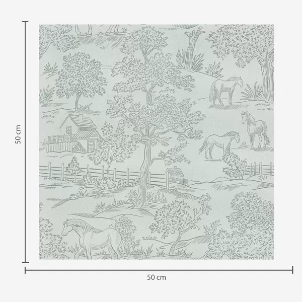 Wallpapers Green monochrome landscape with horses and cottages Nr. a00407