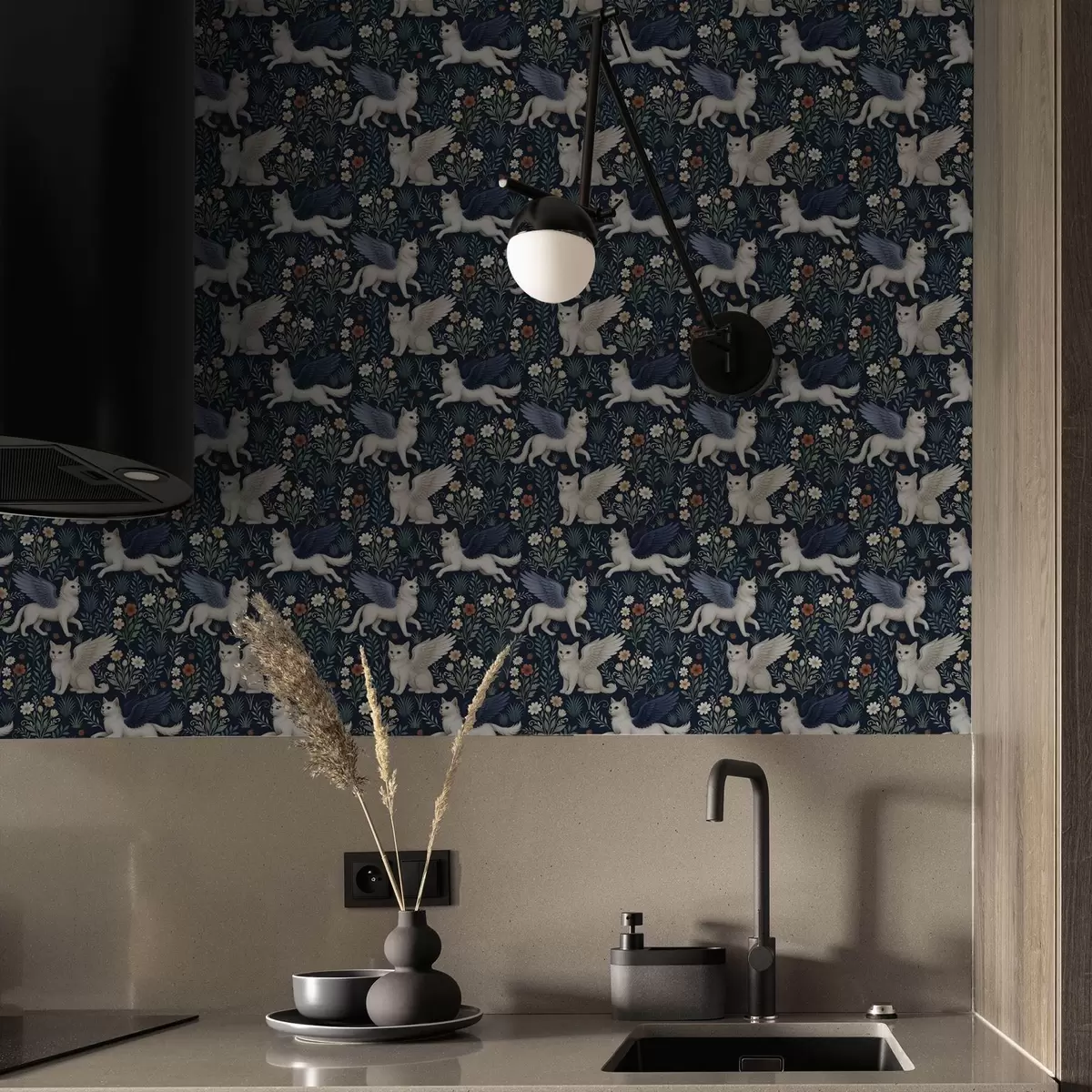 Wallpapers Fantasy cats with wings among flowers Nr. a00408