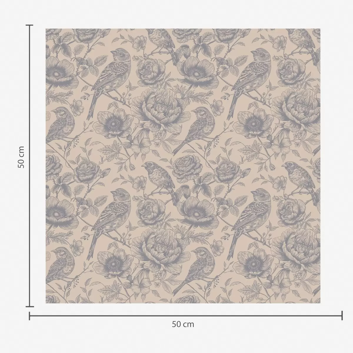 Wallpapers Vintage birds and flowers on a soft beige background Nr. a00423