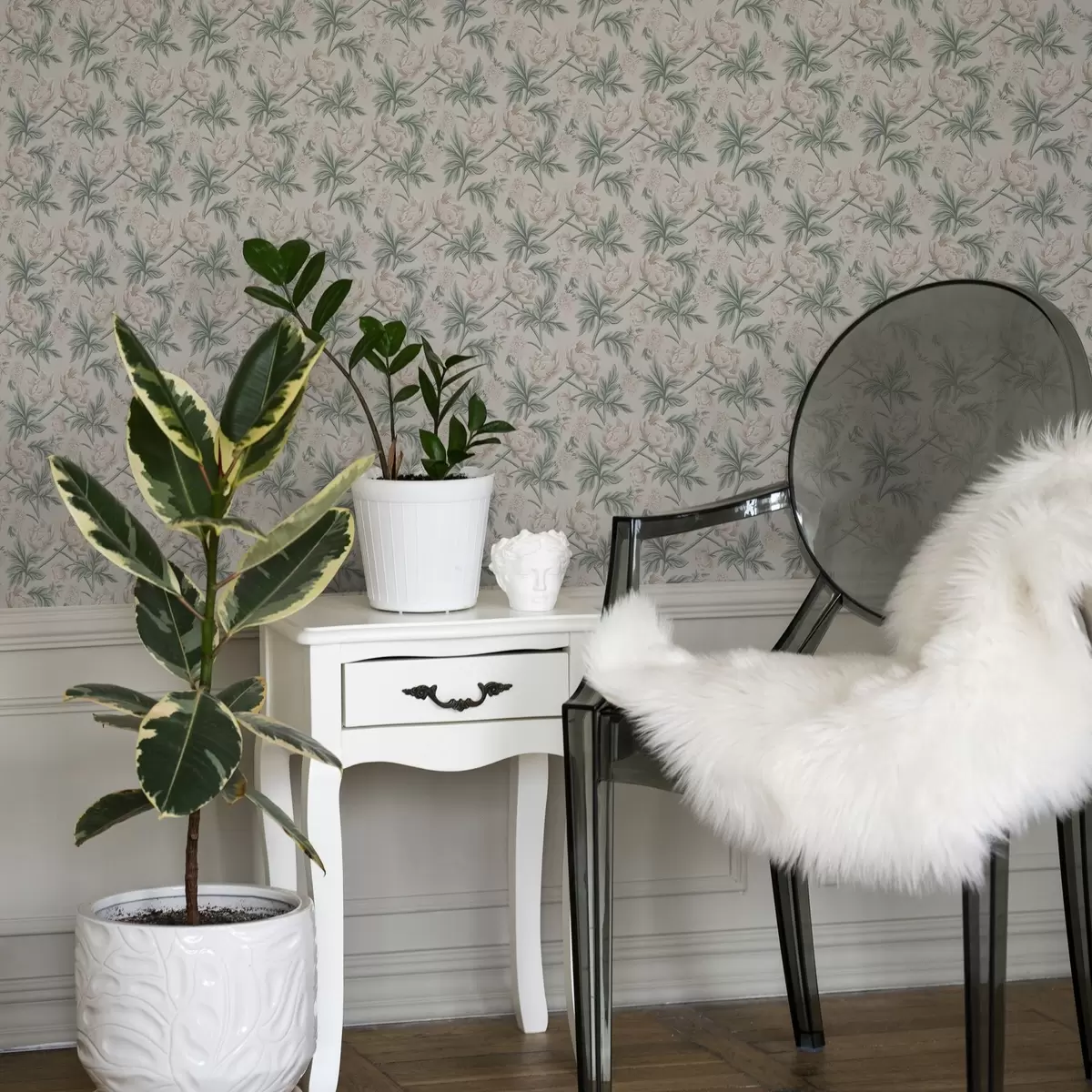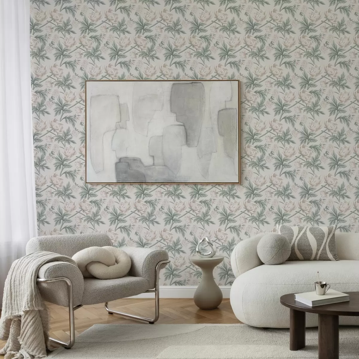 Wallpapers Lush peonies in light beige and green beige and green Nr. a00445