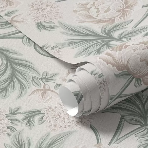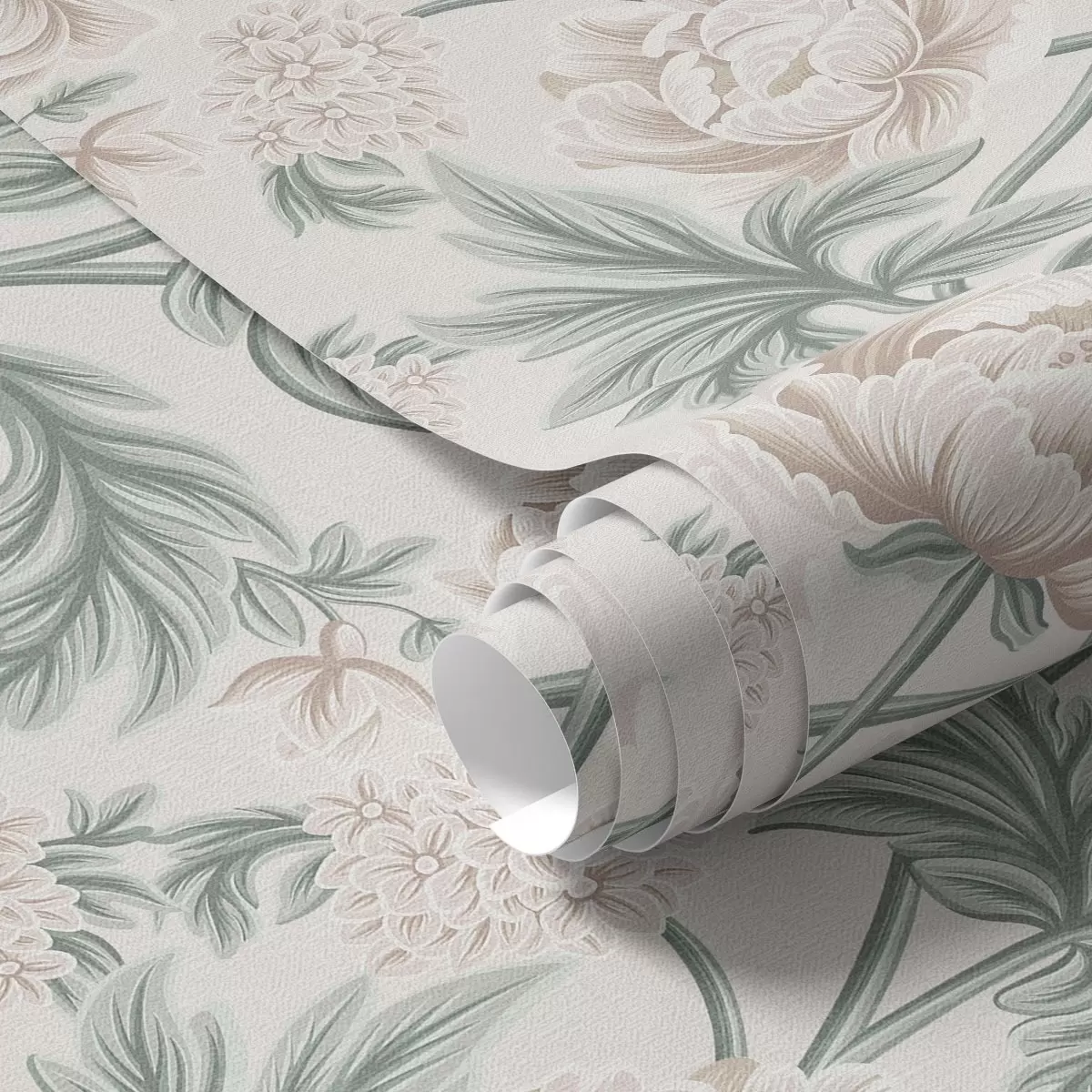 Wallpapers Lush peonies in light beige and green beige and green Nr. a00445