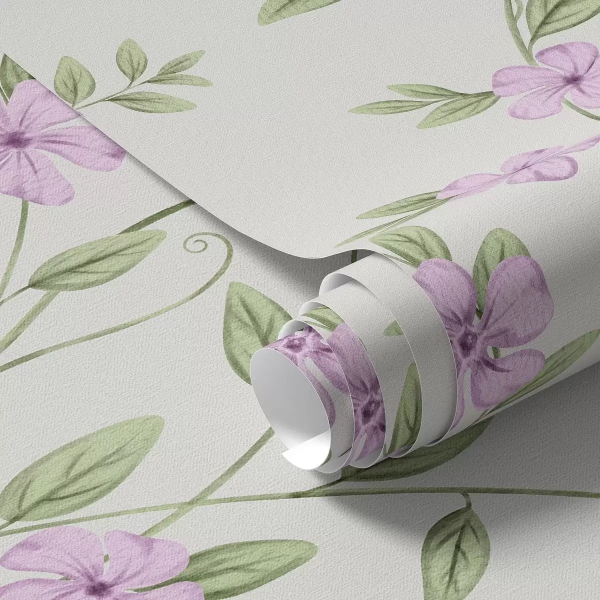 Wallpapers Pink flowers with green vines on a cream background Nr. a00453