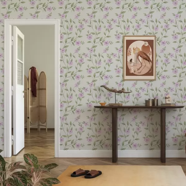 Wallpapers Pink flowers with green vines on a cream background Nr. a00453