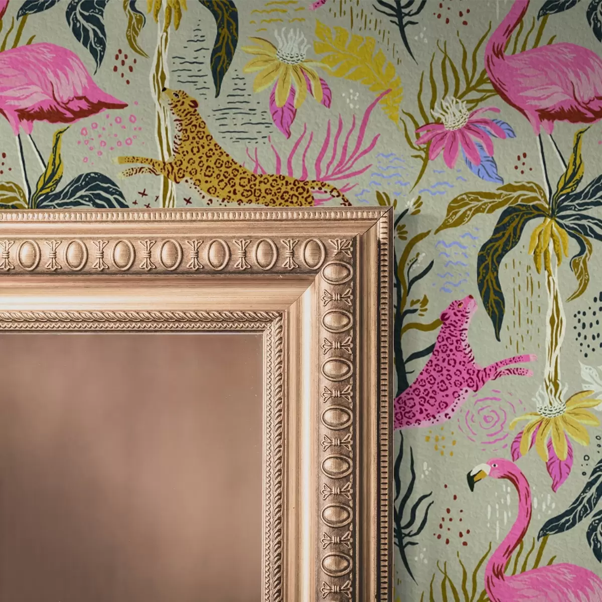 Wallpapers Bright flamingos and leopards among tropical plants Nr. a00470