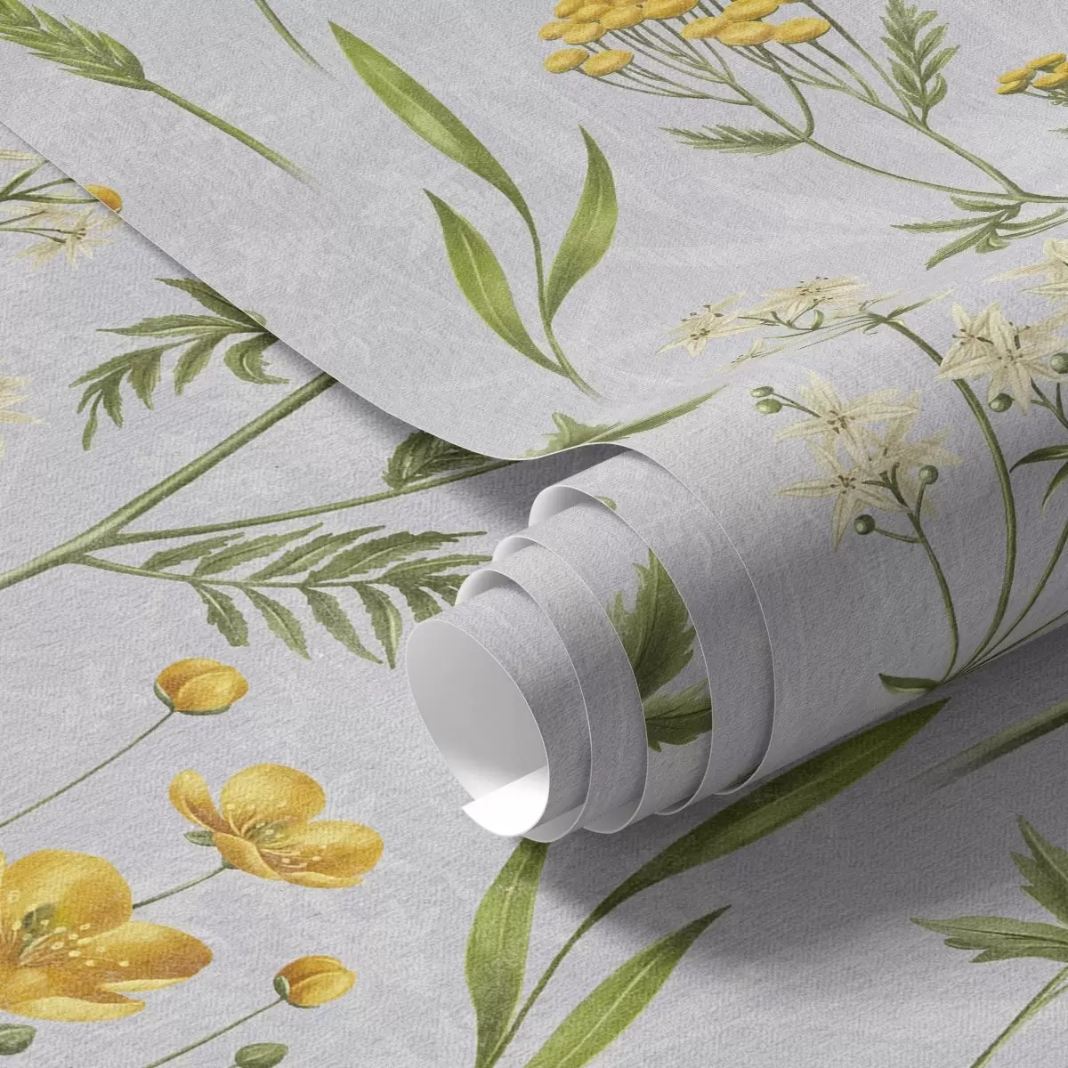 Wallpapers Yellow flowers and greenery on a light gray background Nr. a00472