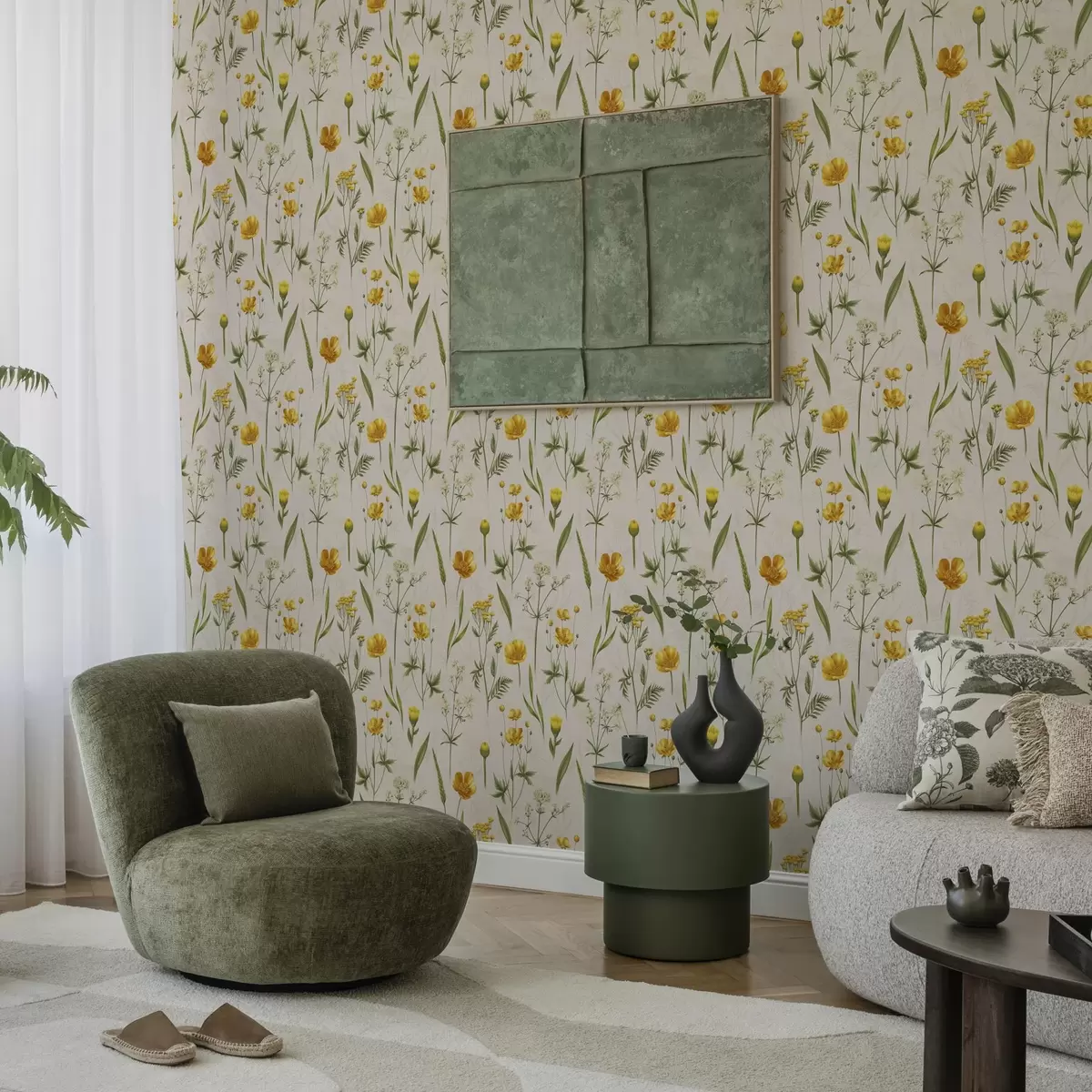 Wallpapers Yellow flowers and greenery on a beige background Nr. a00472v2