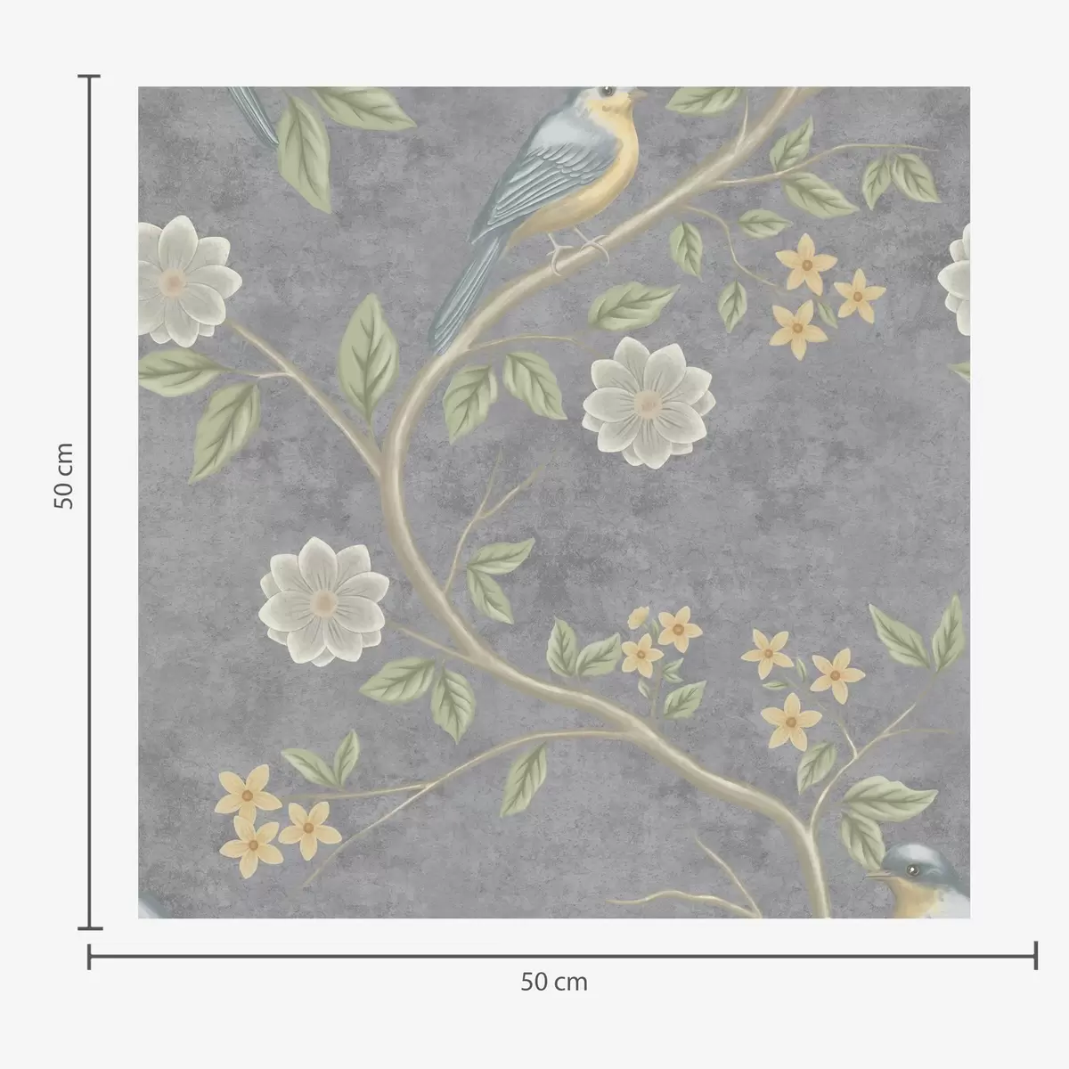 Wallpapers Birds on branches among flowers on a gray background Nr. a00483
