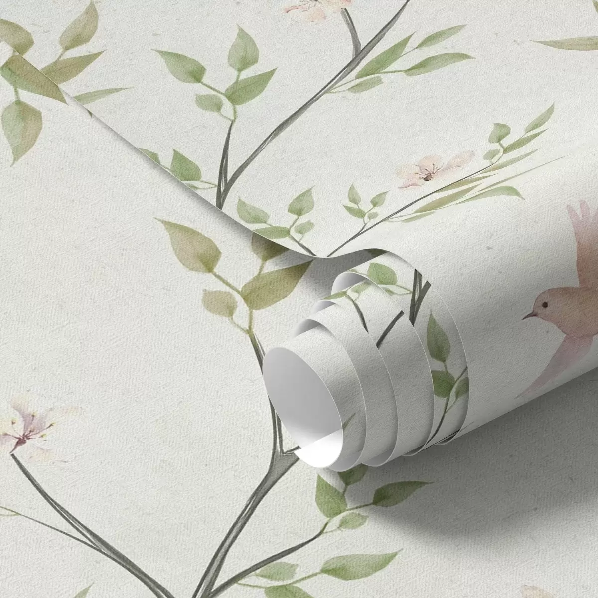 Wallpapers Watercolor branches with leaves and birds on a light ground Nr. a00496