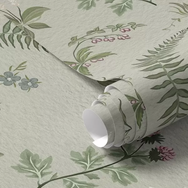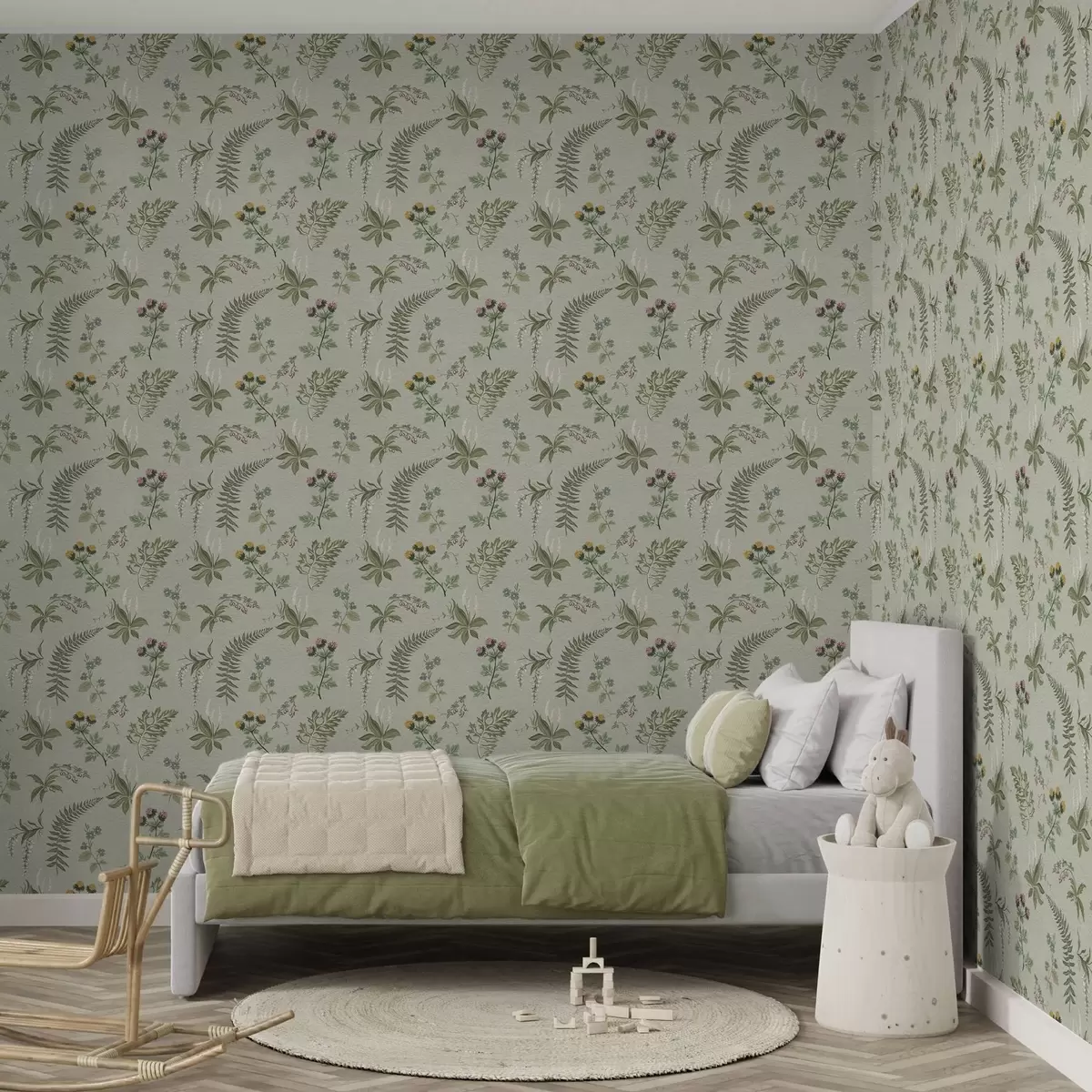 Wallpapers Botanical grasses and ferns on pale gray-green Nr. a00498