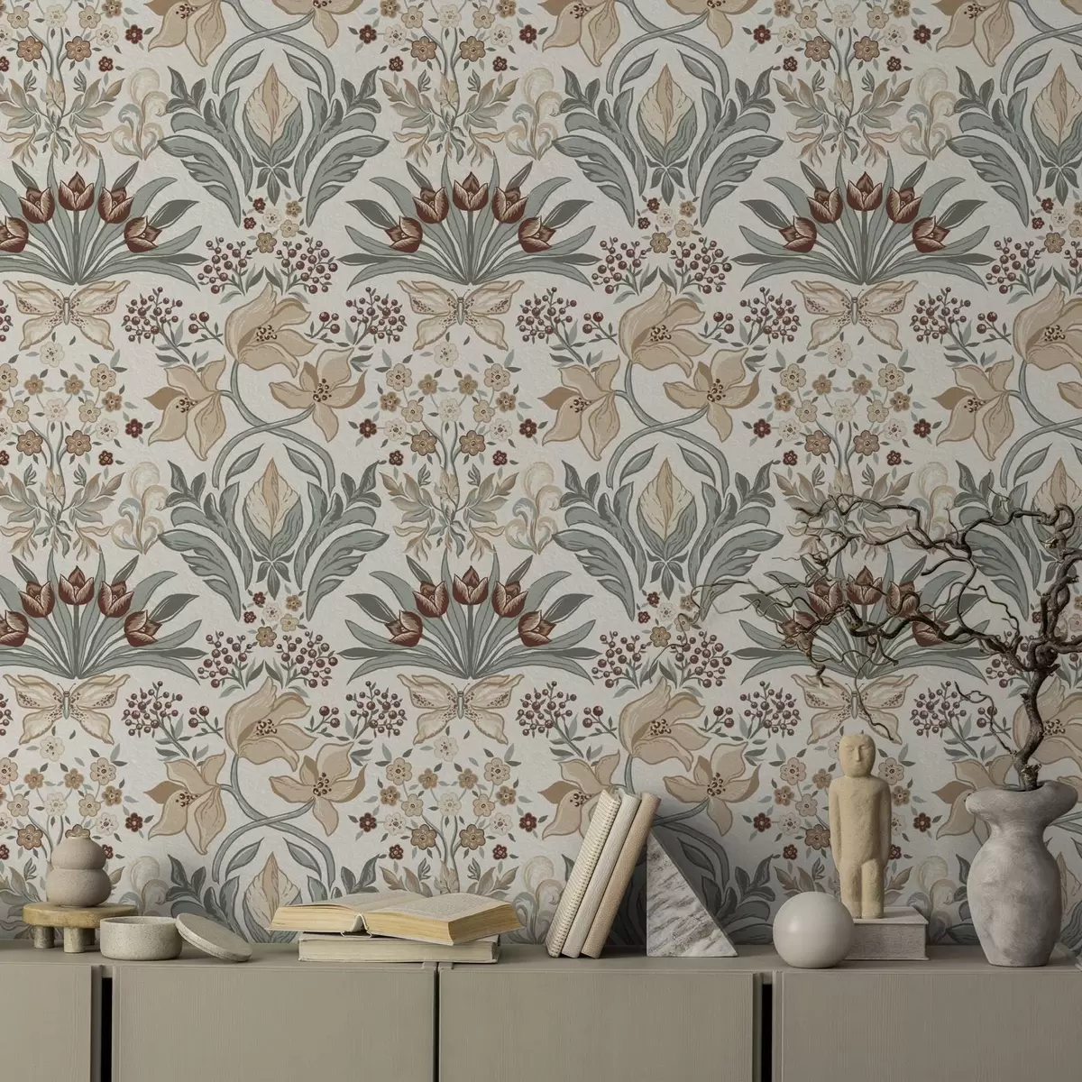 Wallpapers Decorative lilies and a butterfly on a cream background Nr. a00500