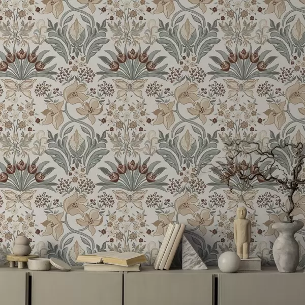 Wallpapers Decorative lilies and a butterfly on a cream background Nr. a00500