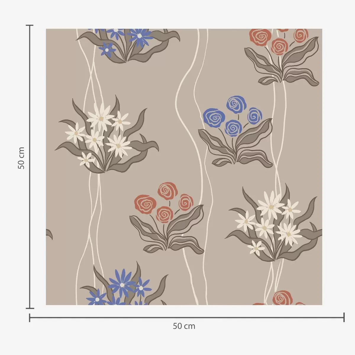 Printed to order and delivered in rolls up to 50 cm wide.