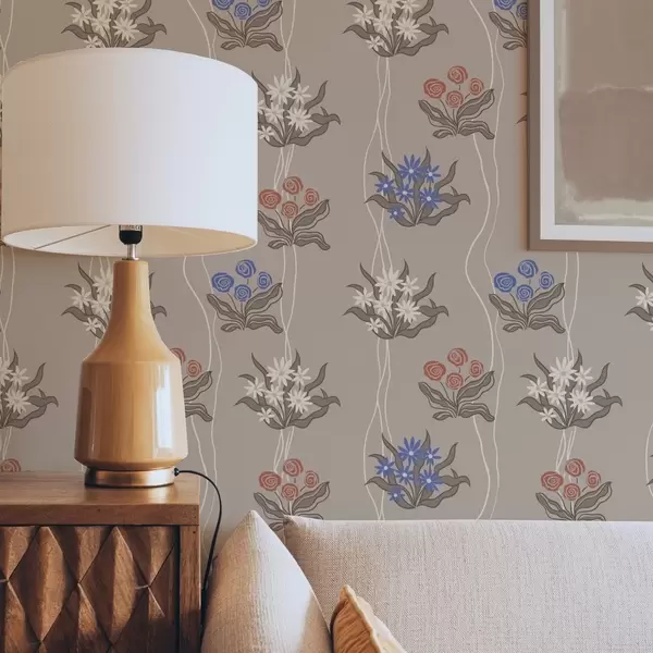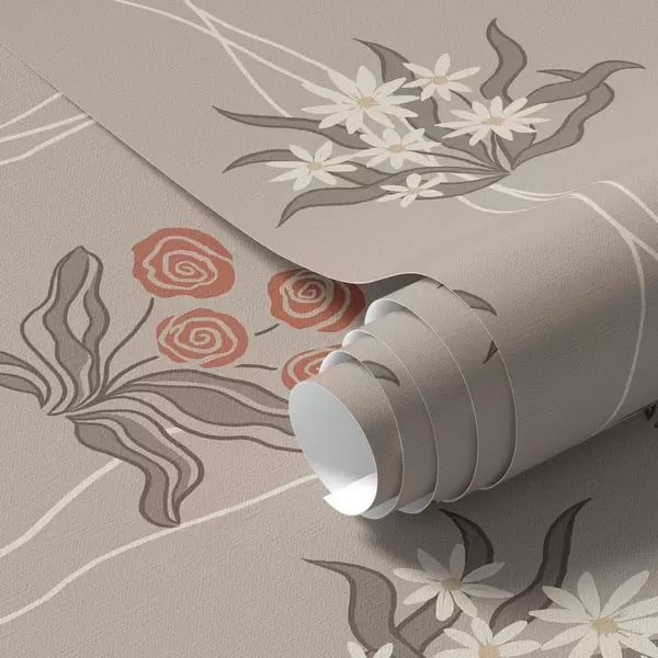 Wallpapers Retro flowers with wavy lines on warm beige Nr. a00503