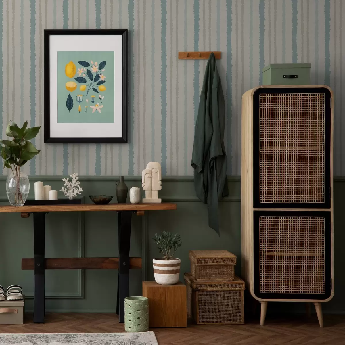 Wallpapers Turquoise-beige stripes with hand-painted effect Nr. a00510v1