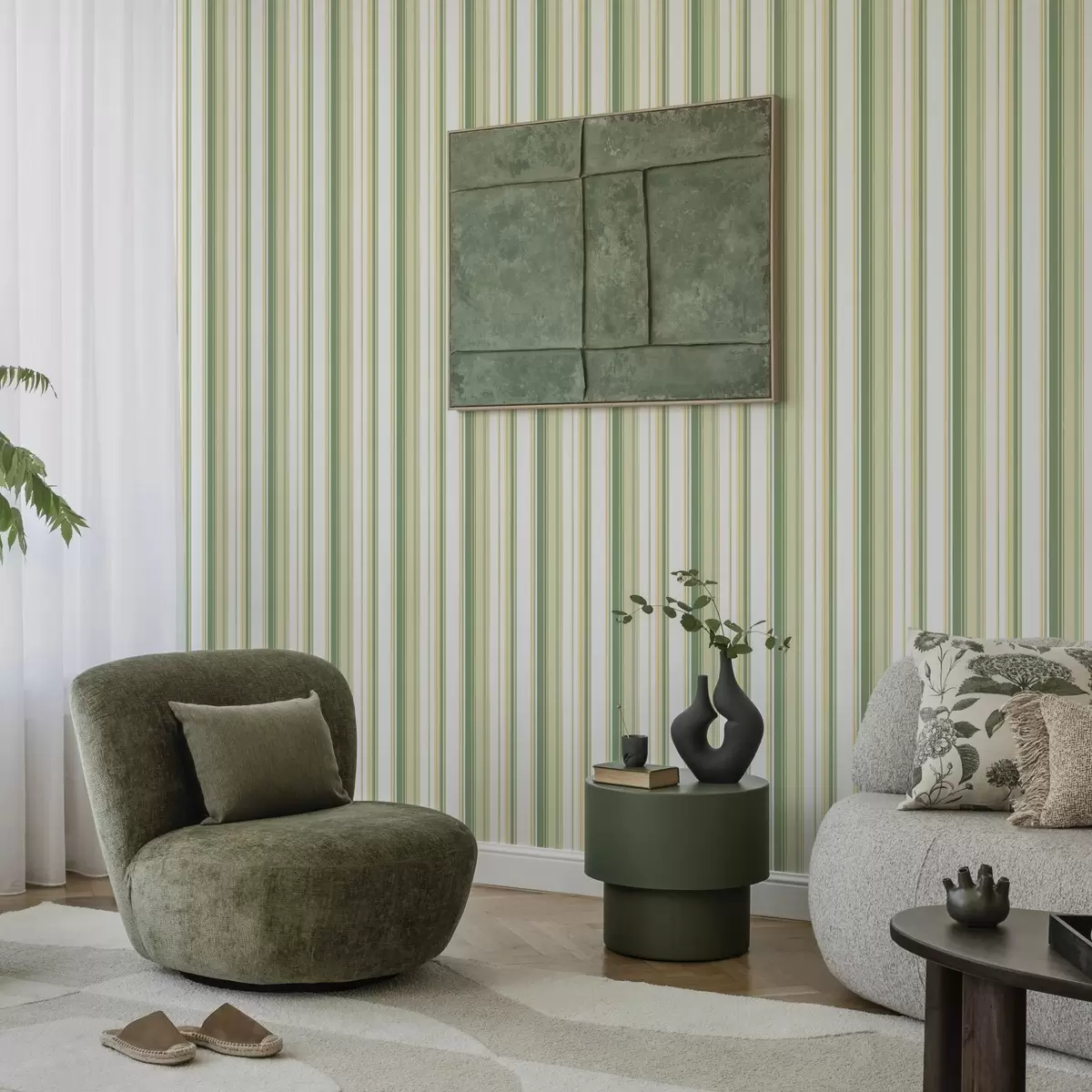 Wallpapers Green and beige stripes with yellow accent lines Nr. a00531