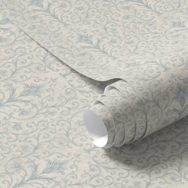 Wallpapers Blue damask with scrolls on a cream background Nr. a00578