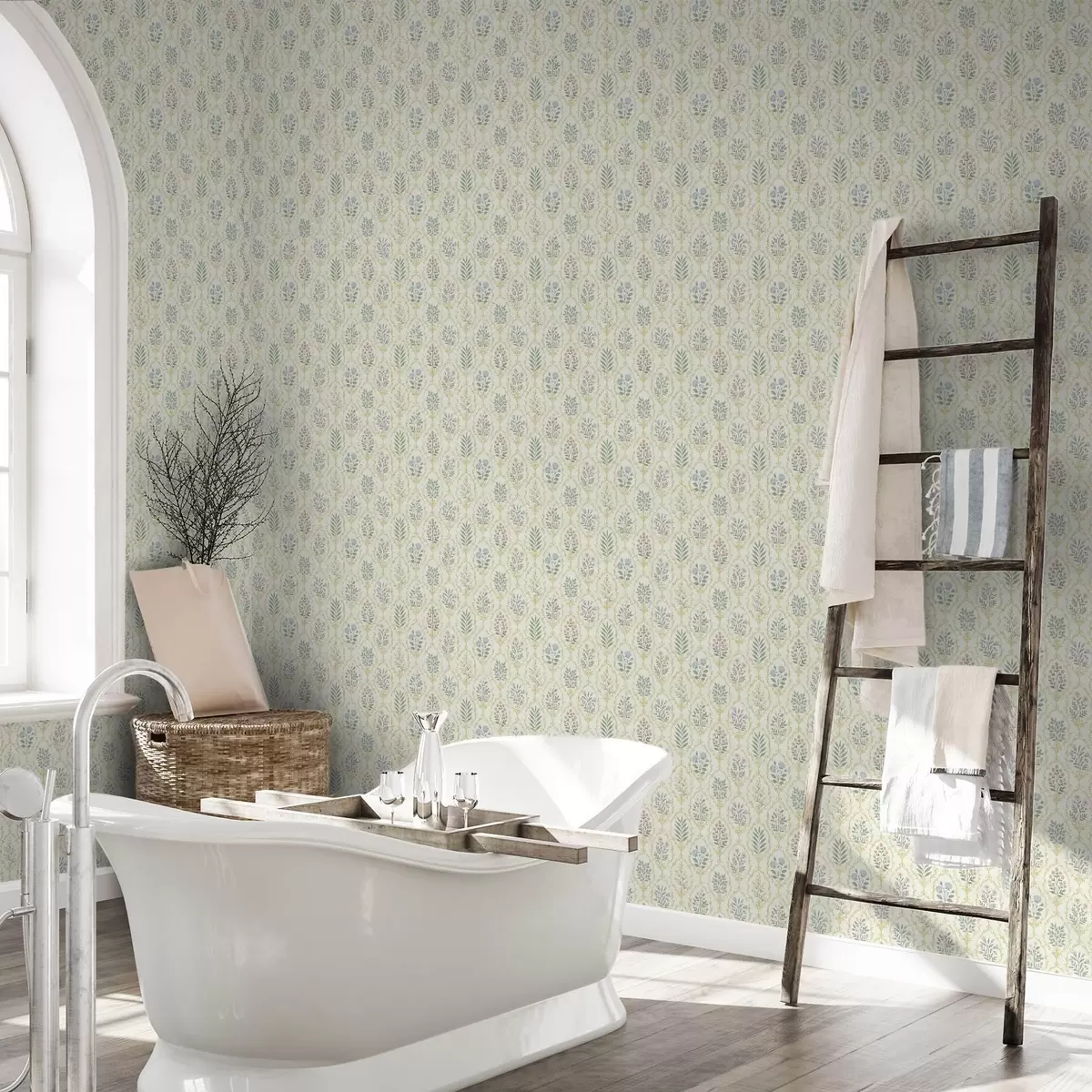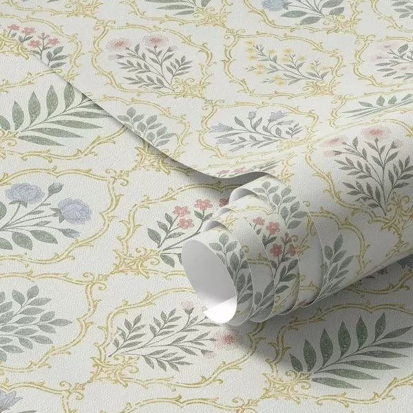 Wallpapers Botanical medallions in a lattice, pastel tones Nr. a00579