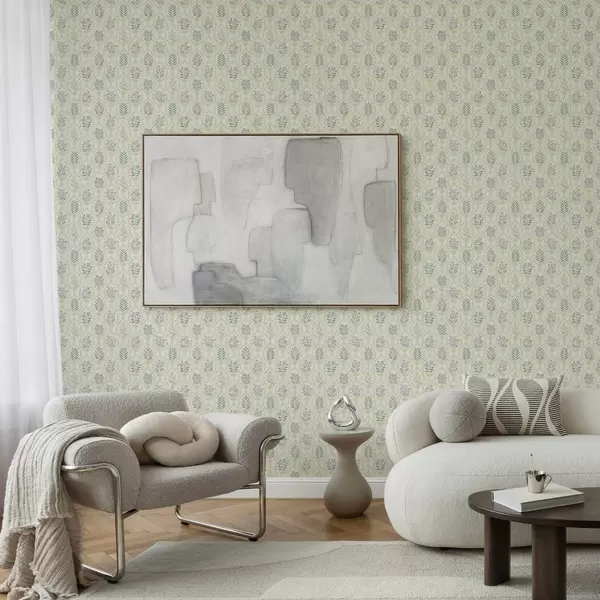 Wallpapers Botanical medallions in a lattice, pastel tones Nr. a00579