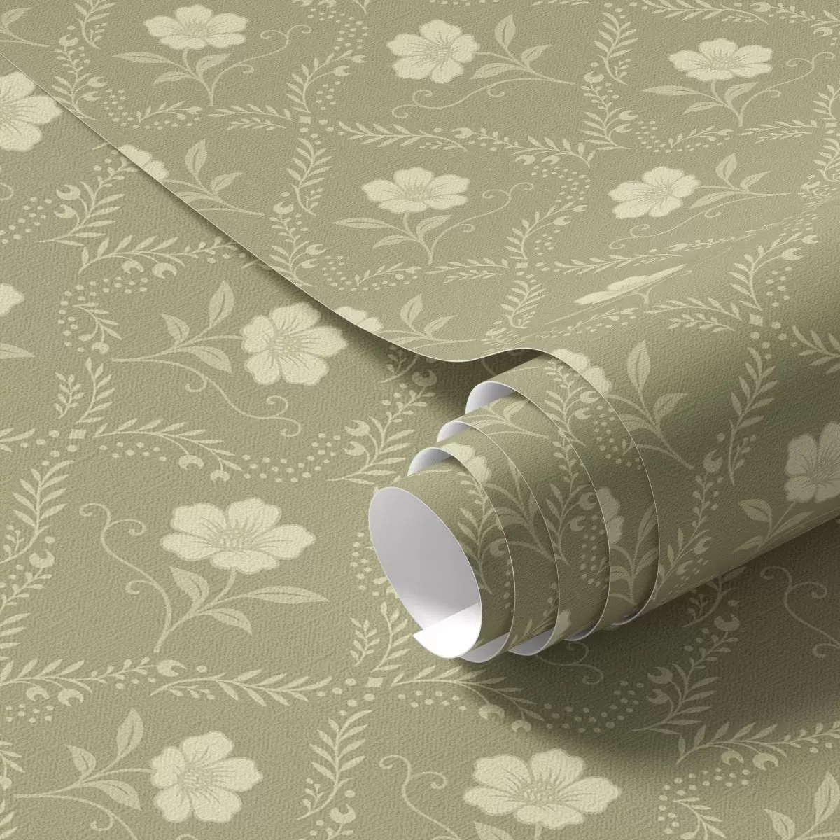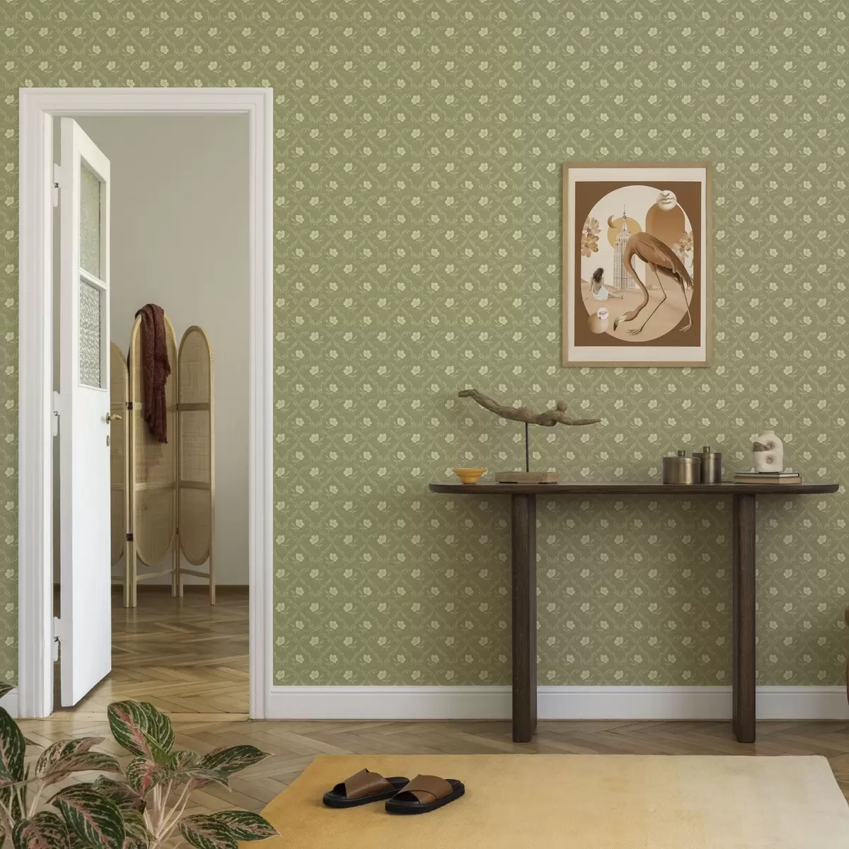 Wallpapers Olive trellis with cream flowers, retro ornament Nr. a00585