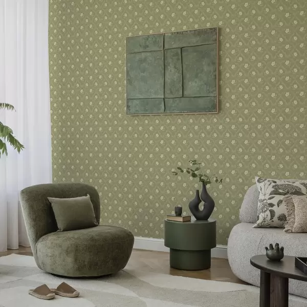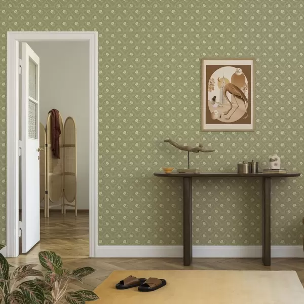 Wallpapers Olive trellis with cream flowers, retro ornament Nr. a00585