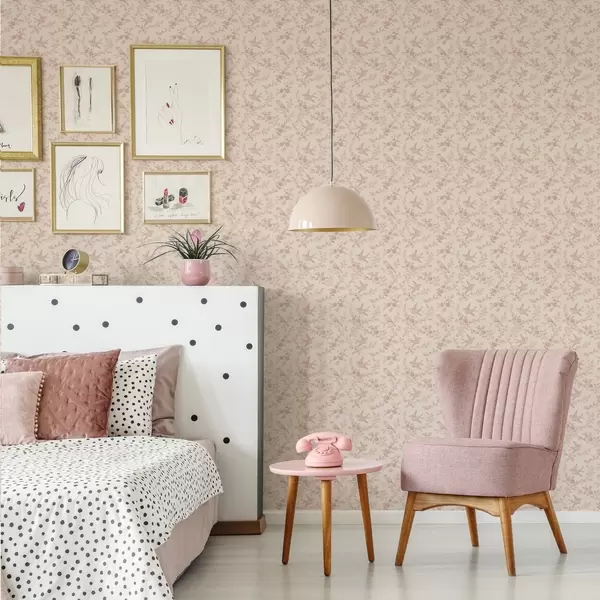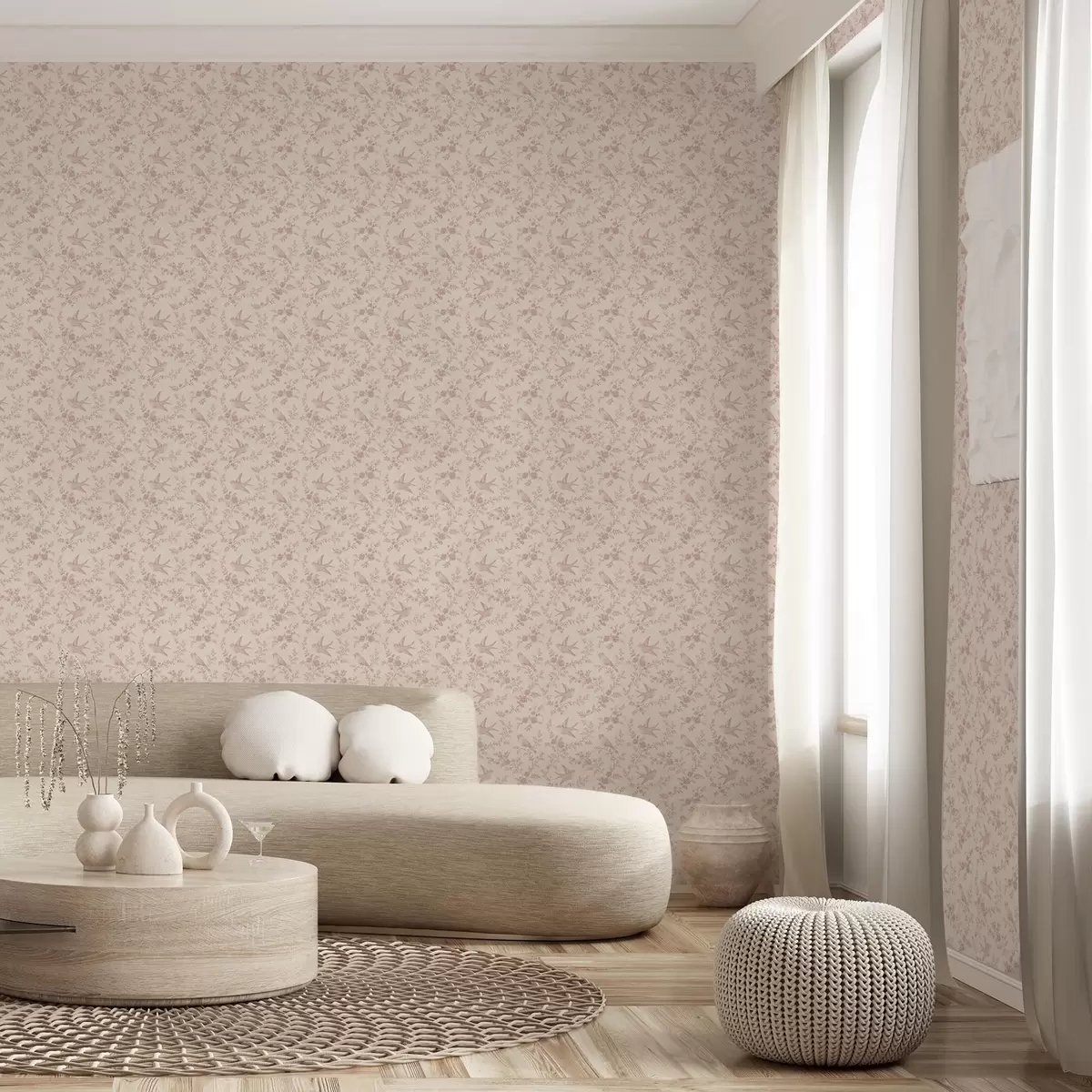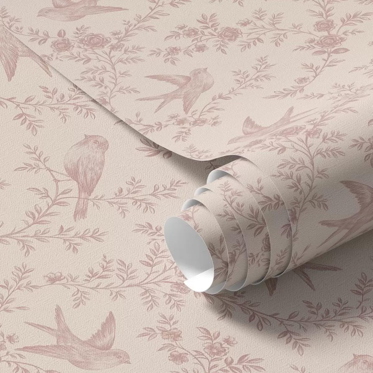 Wallpapers Birds and roses, vintage pattern on powder pink Nr. a00587