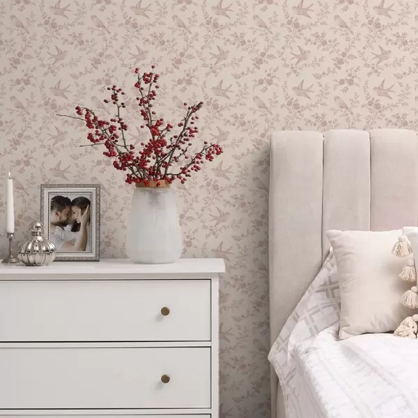 Wallpapers Birds and roses, vintage pattern on powder pink Nr. a00587