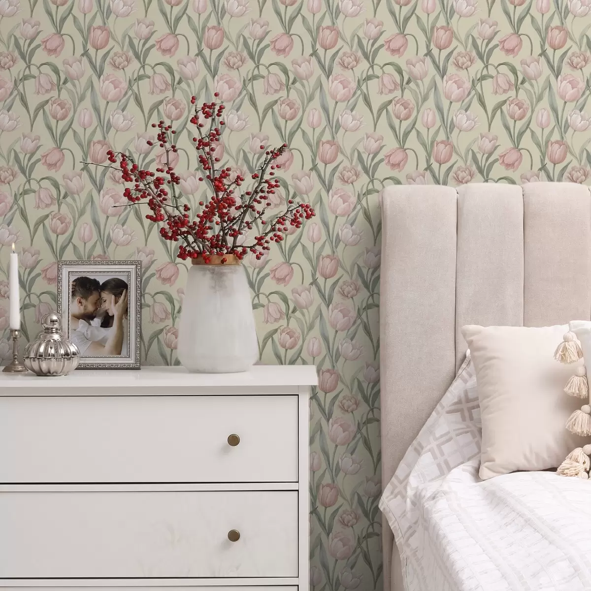 Wallpapers Soft pink tulips on a gentle beige background Nr. a00589