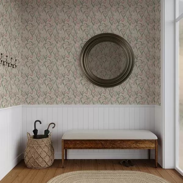 Wallpaper Soft pink tulips on a gentle beige background a00589