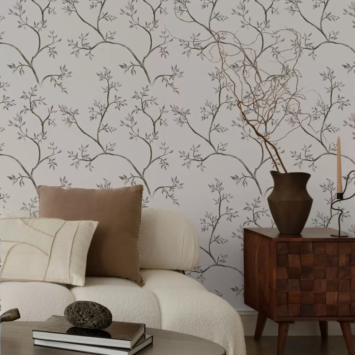 Wallpapers Delicate leafy branches on a warm cream background Nr. a00597v1