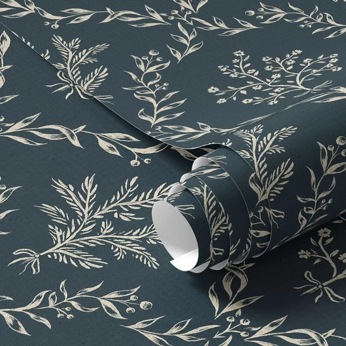 Wallpapers White herb-and-flower wreaths on dark teal Nr. a00599v2