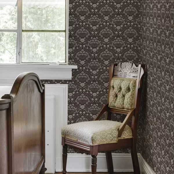 Wallpapers Dark chocolate damask with peonies and snowdrops Nr. a00603v2