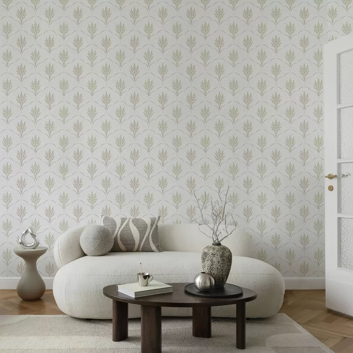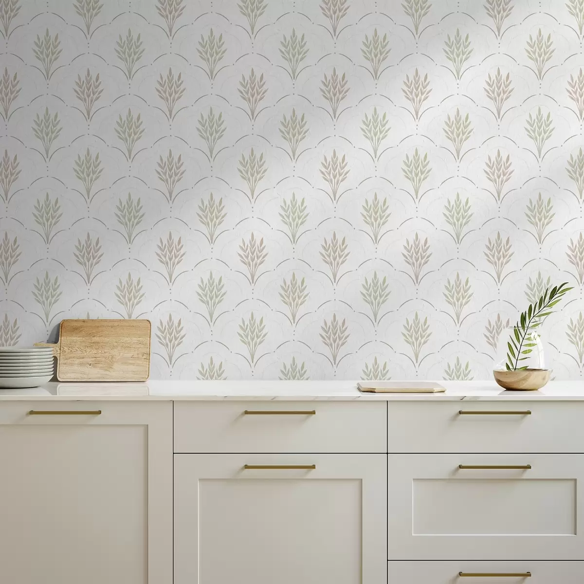 Wallpapers Wheat in an arched ornament, soft pastels on white Nr. a00607v1