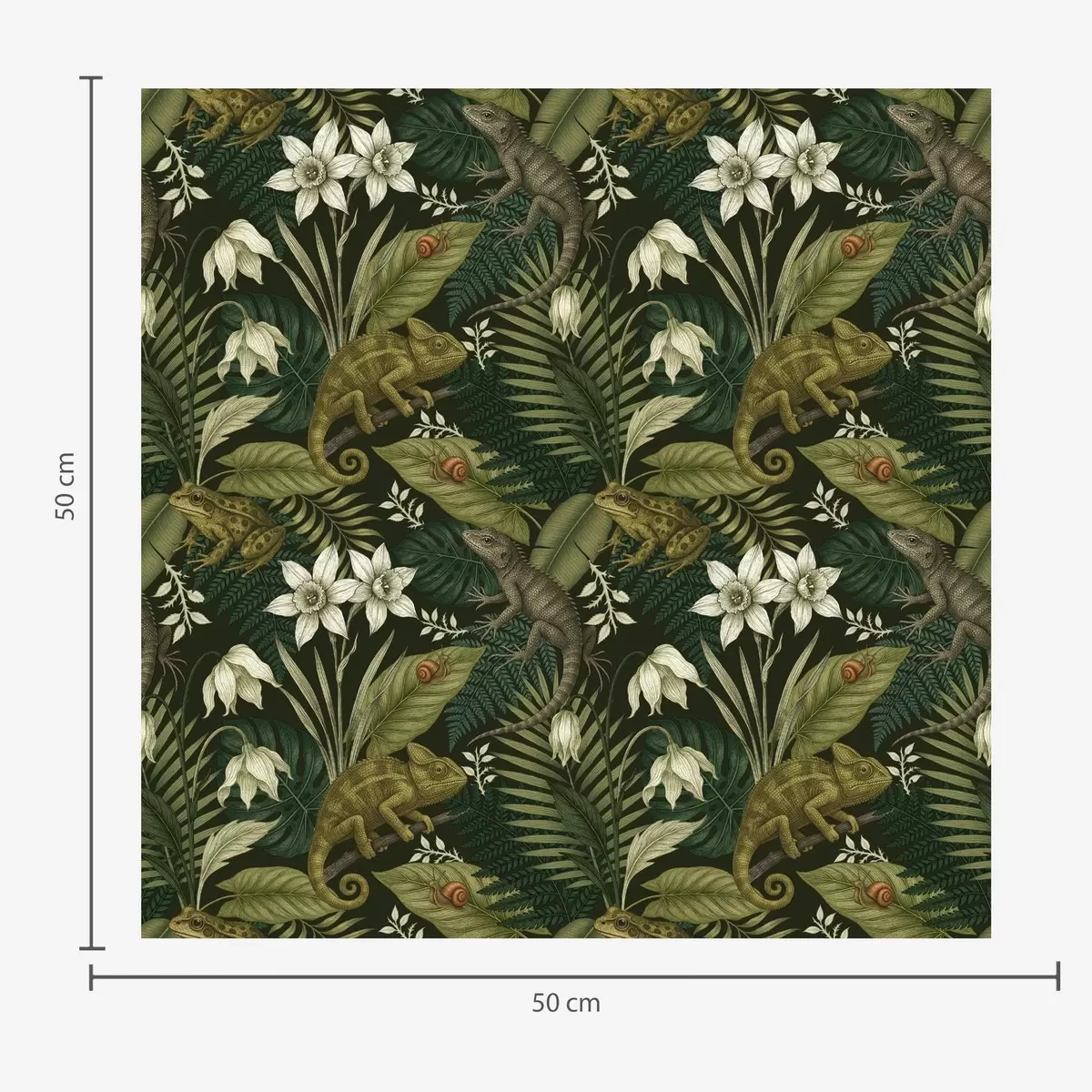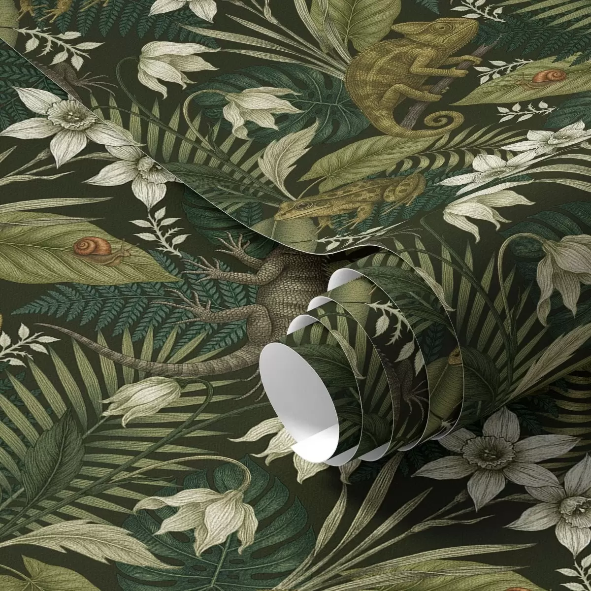 Wallpapers Chameleons and tropical leaves, white flowers, dark ground Nr. a00608v1