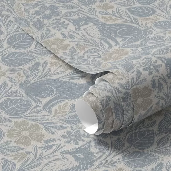 Wallpapers Forest animals and flowers: fox and hare in blue tones Nr. a00613