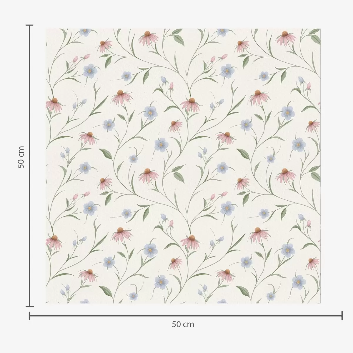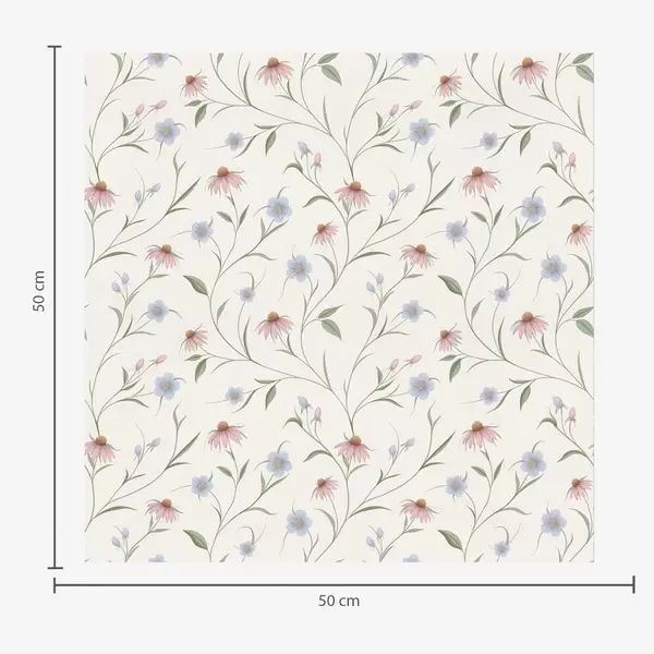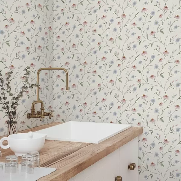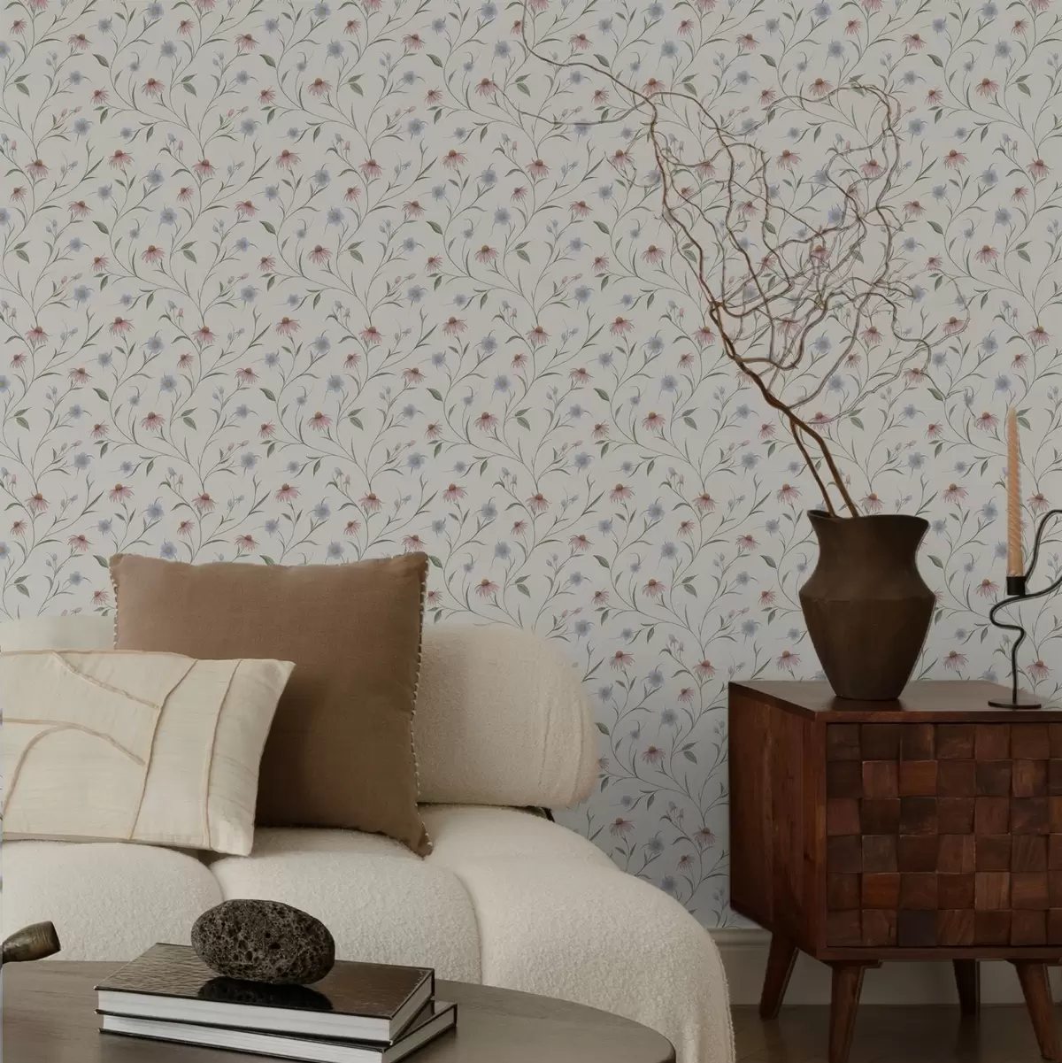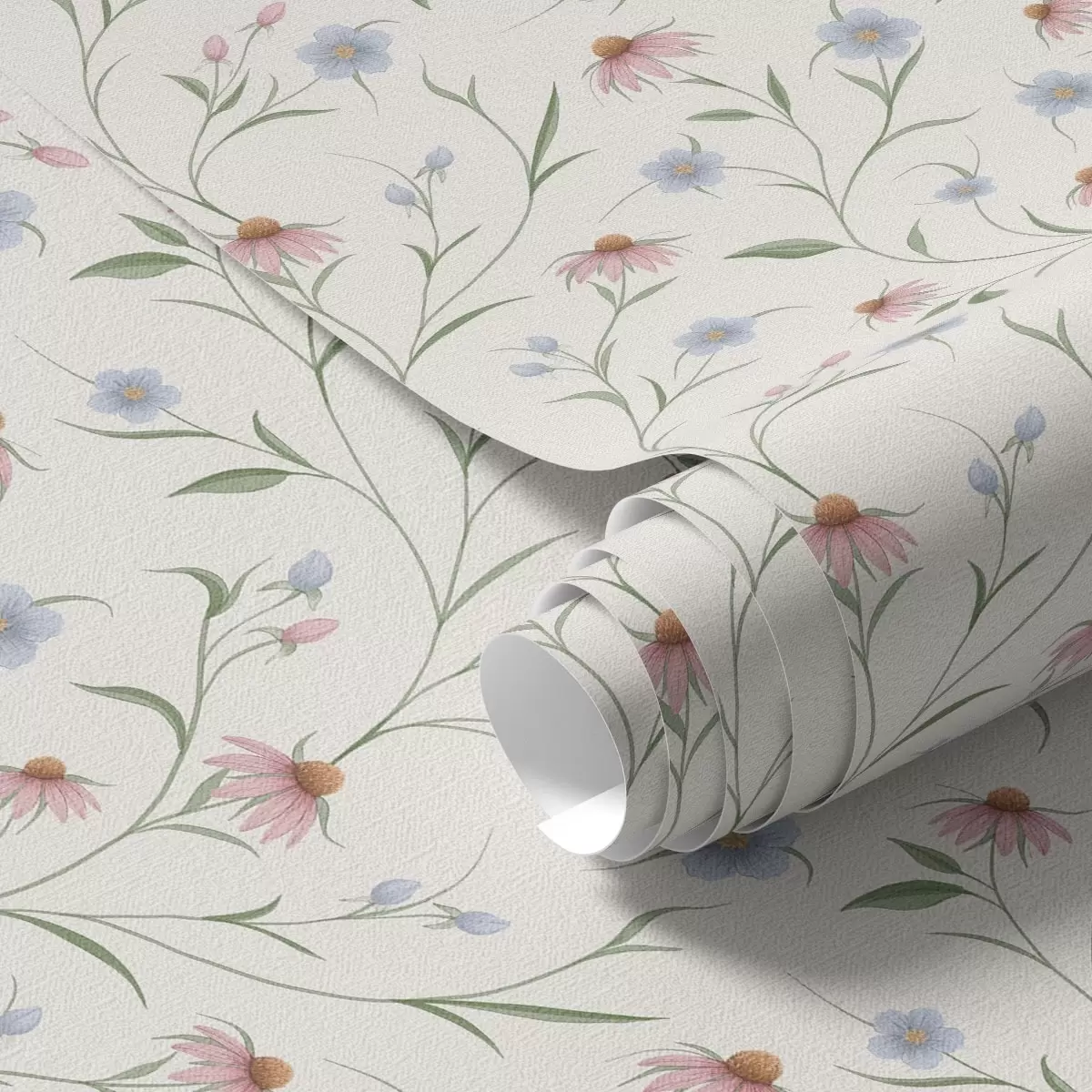 Wallpaper Field daisies and echinacea on a cream background, lightness a00614