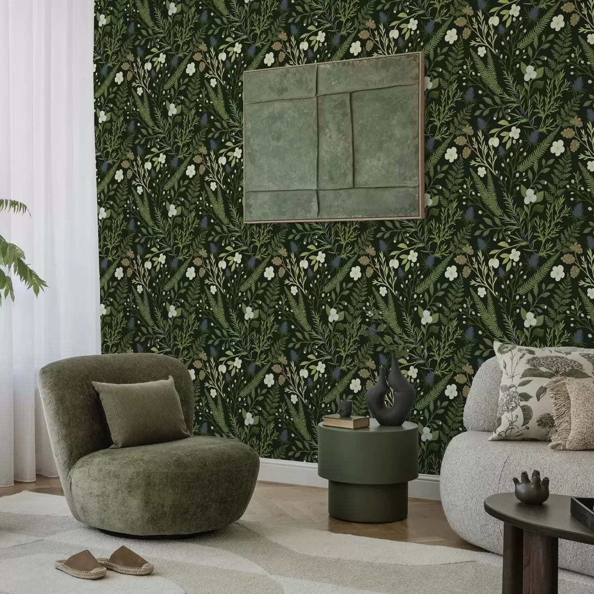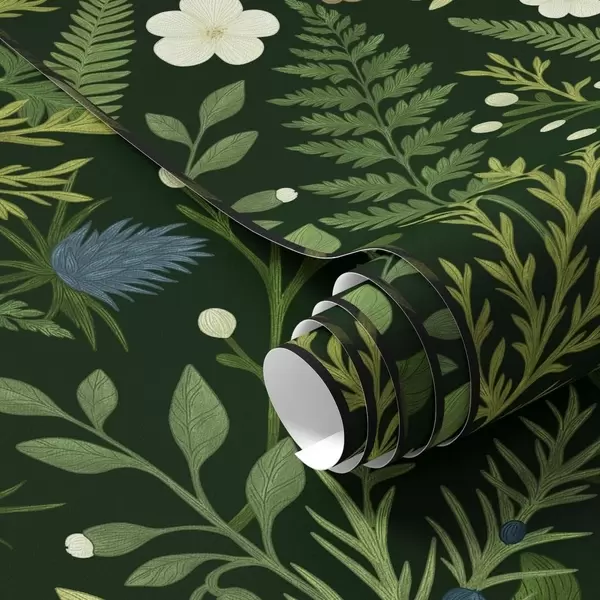 Wallpapers Woodland herbs and berries on a dark green background Nr. a00621v2