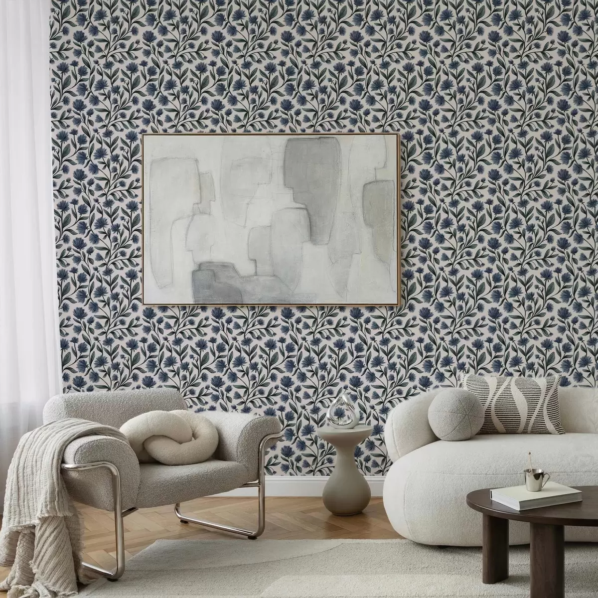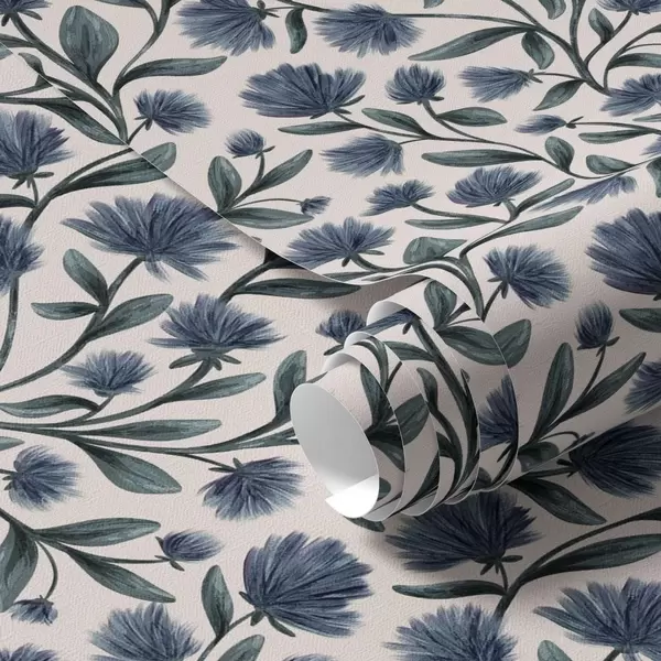 Wallpapers Wildflowers in a blue-green palette on a cream background Nr. a00623v2
