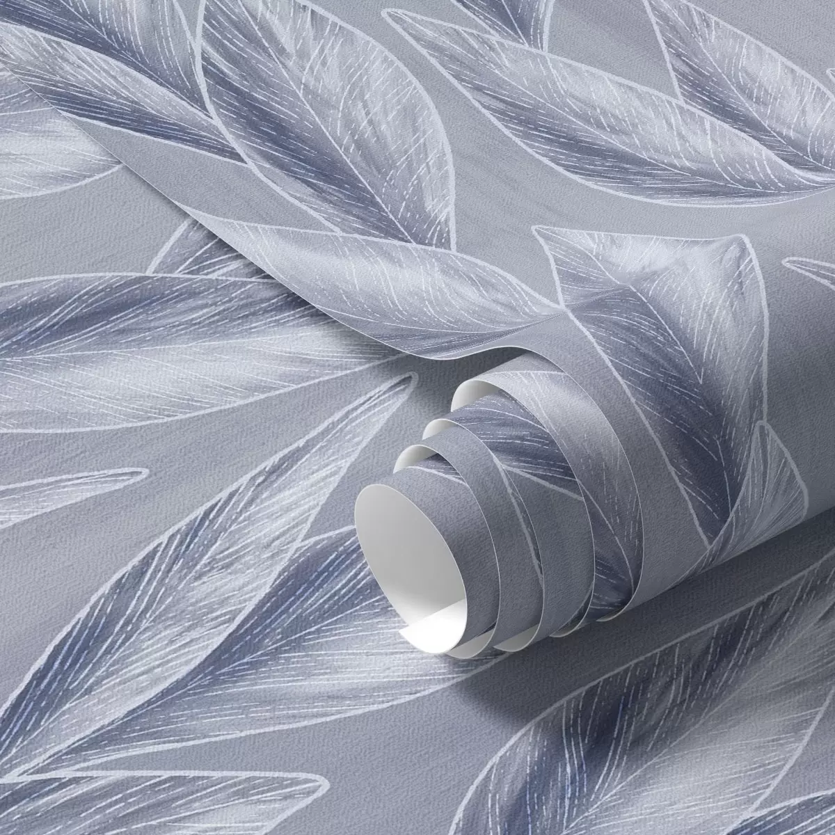 Wallpapers Silvery-blue leaves on a gray-blue background, graphic pattern Nr. a00627