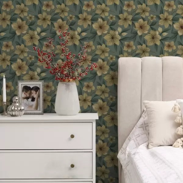 Wallpapers Ochre flowers on a deep green background, dense pattern Nr. a00628
