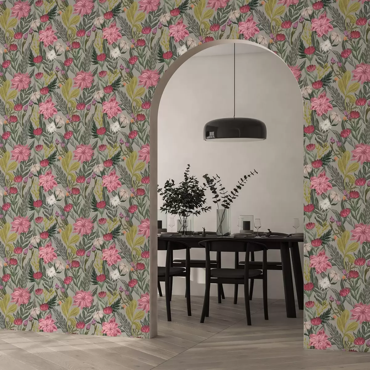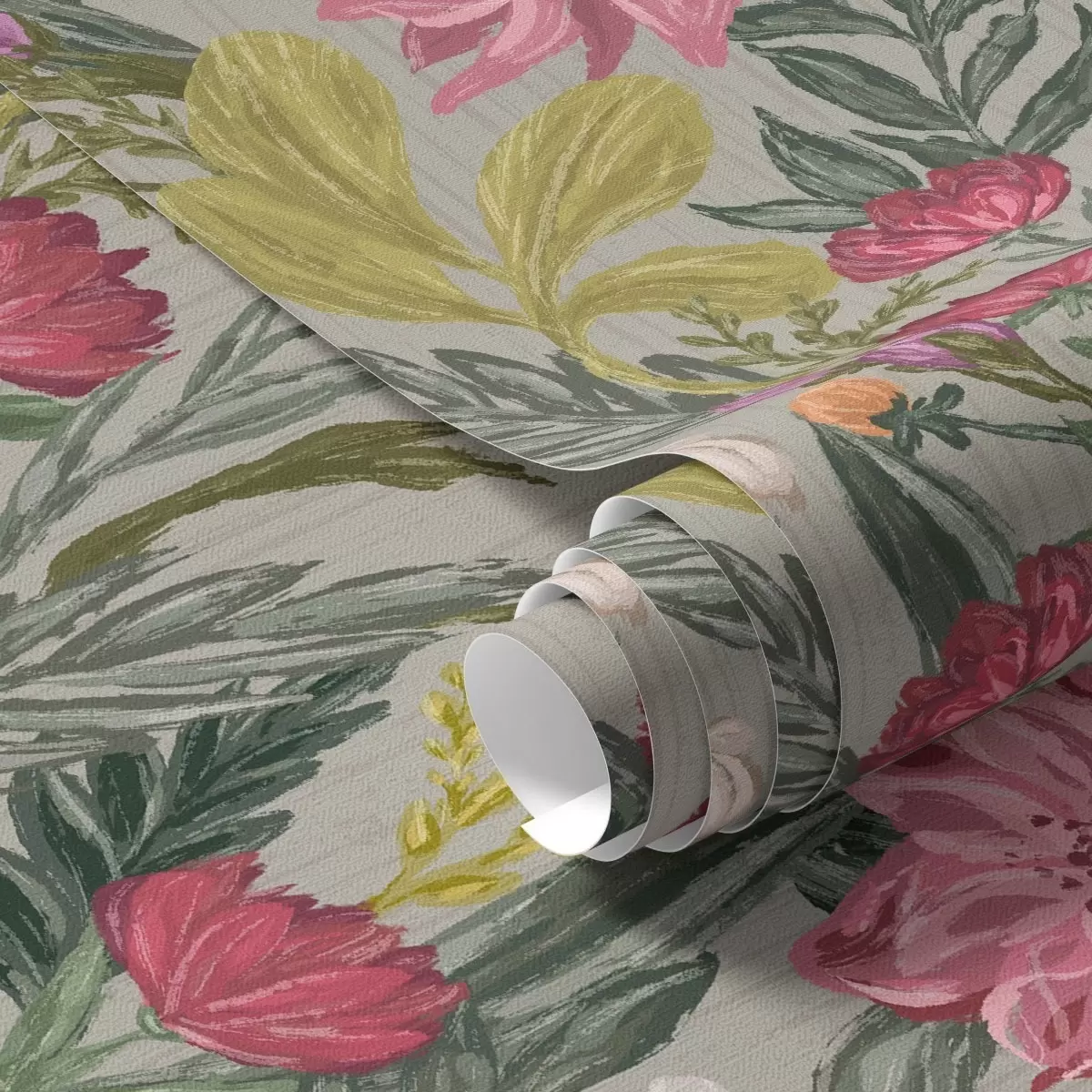 Wallpapers Lush pink and cream flowers on a gray background, impasto texture Nr. a00629