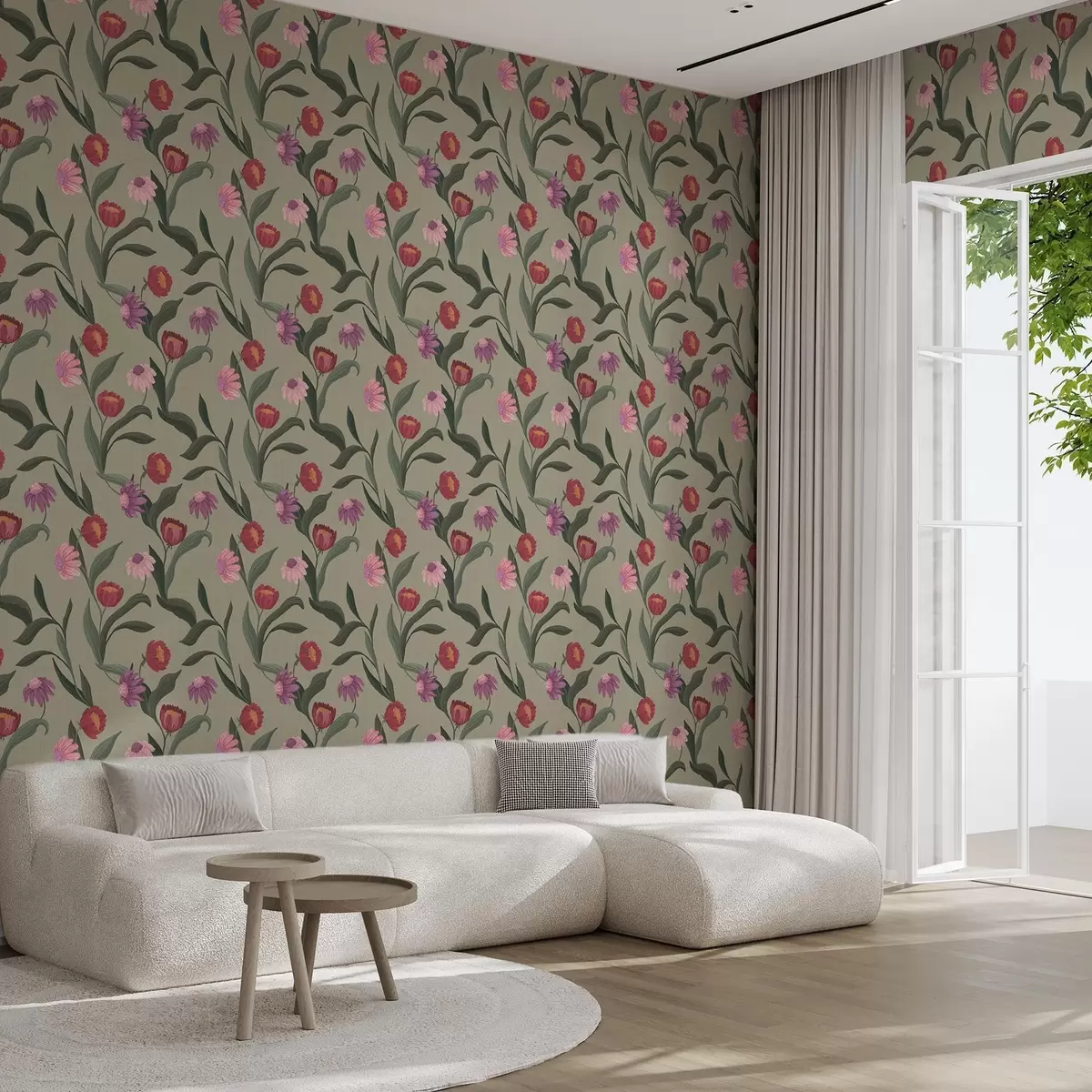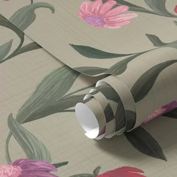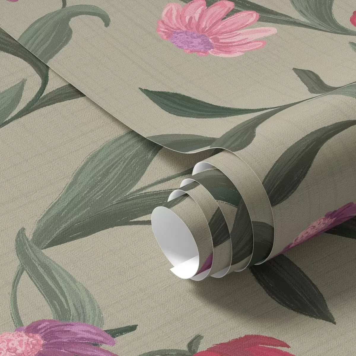 Wallpapers Pink-red flowers on an olive background, canvas texture Nr. a00631v1