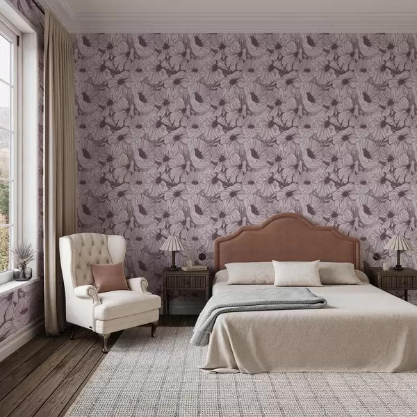 Wallpapers Linear flowers in a cool lilac-pink palette Nr. a00636v1