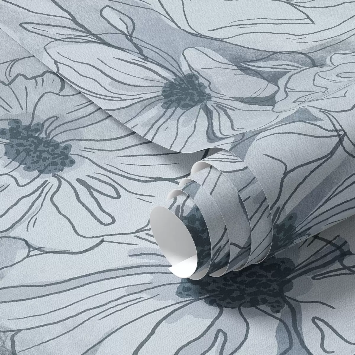 Wallpapers Linear flowers in a cool gray-blue palette Nr. a00636v2