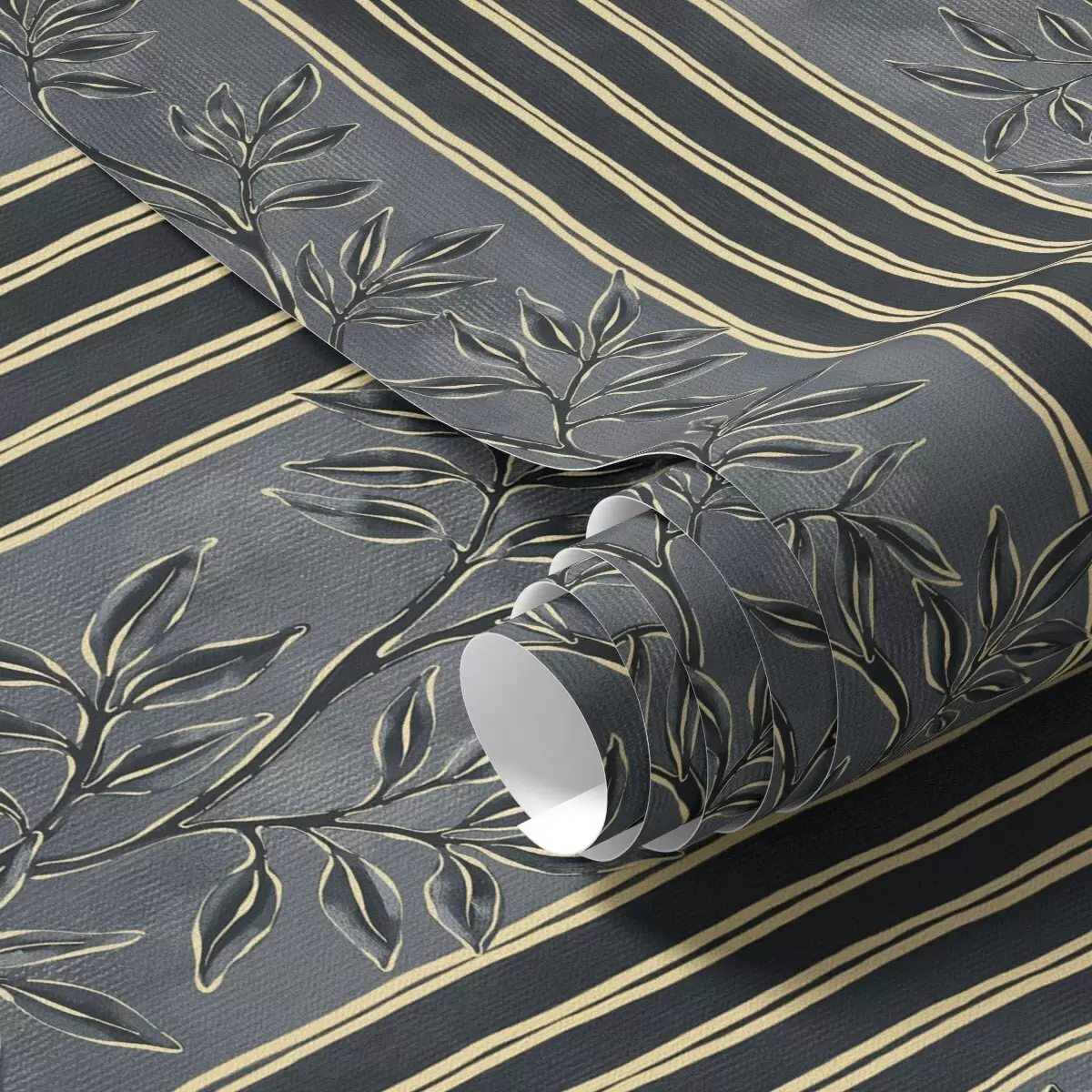 Wallpapers Vertical stripes with botanical patterns in dark tones Nr. a00648
