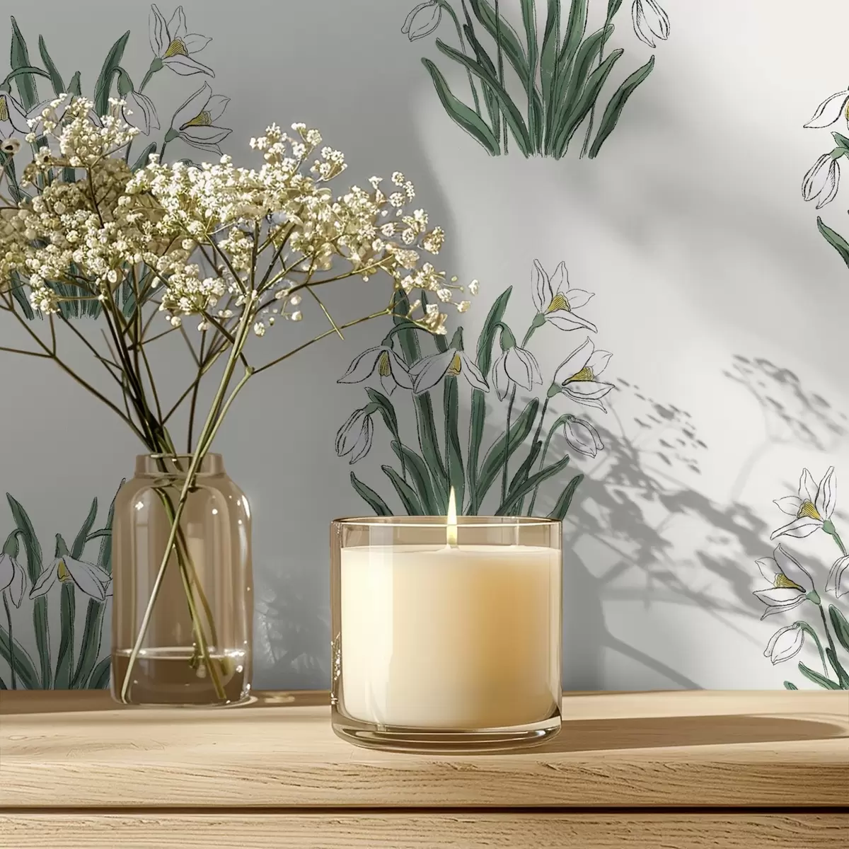 Wallpapers Snowdrops with green leaves on a light gray background Nr. a00651v1