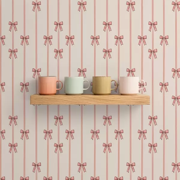 Wallpapers Vertical ribbons with bows, ivory background Nr. a00653
