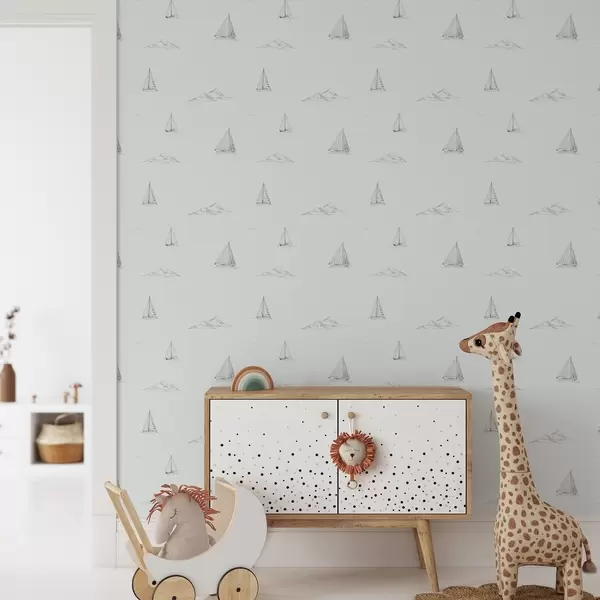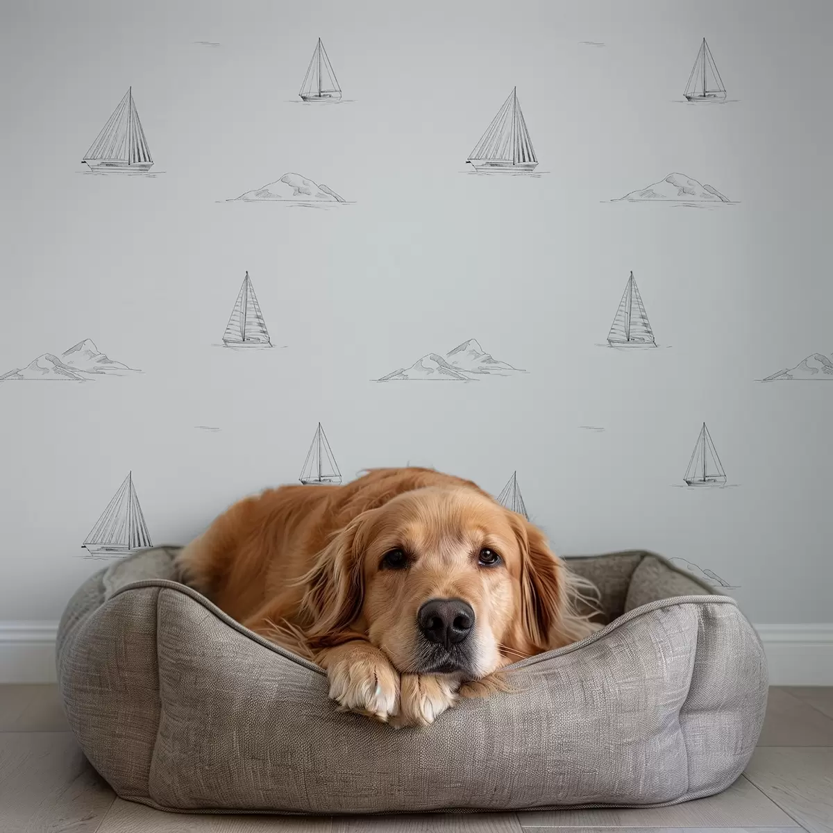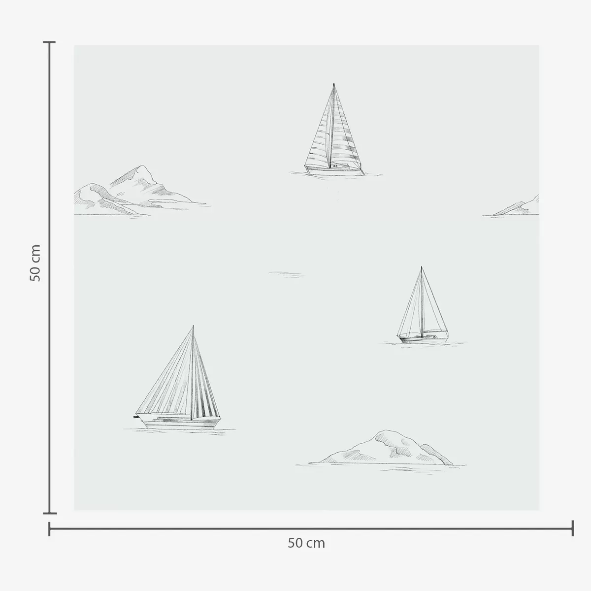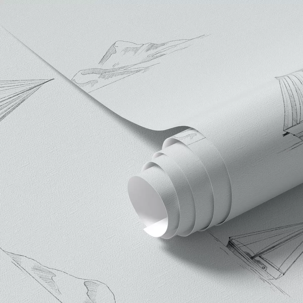 Wallpaper Sketch yachts and islands, cool blue-gray background a00654